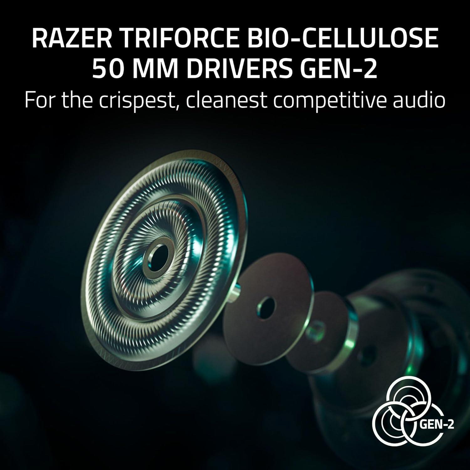 TRIFORCE BIO-CELLULOUSE 50MM DRIVERS GEN-2 — Tuned for improved clarity and positional performance, the Gen-2 drivers feature a unique bio-cellulose diaphragm to deliver natural, powerful sound—hear every footstep with absolute precision