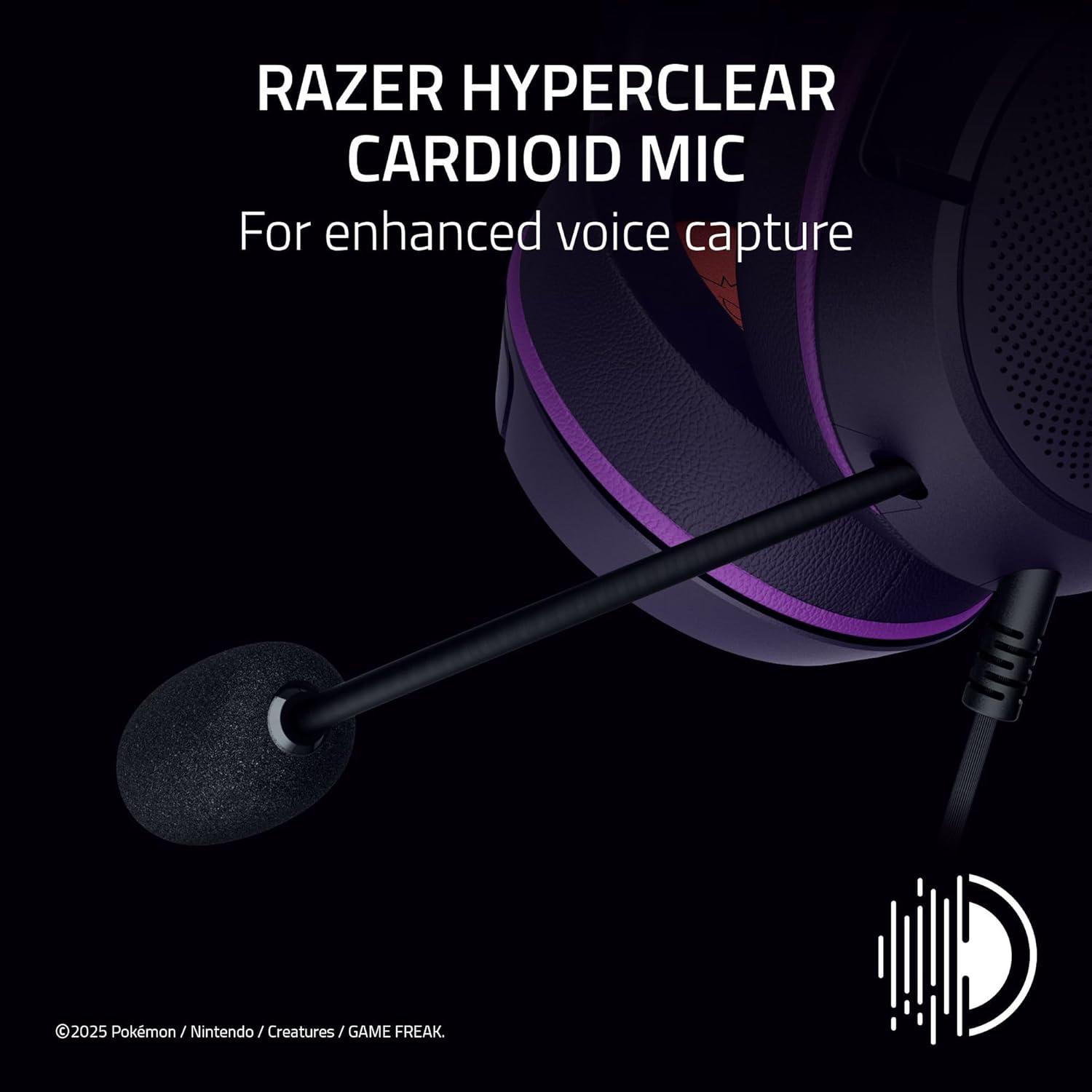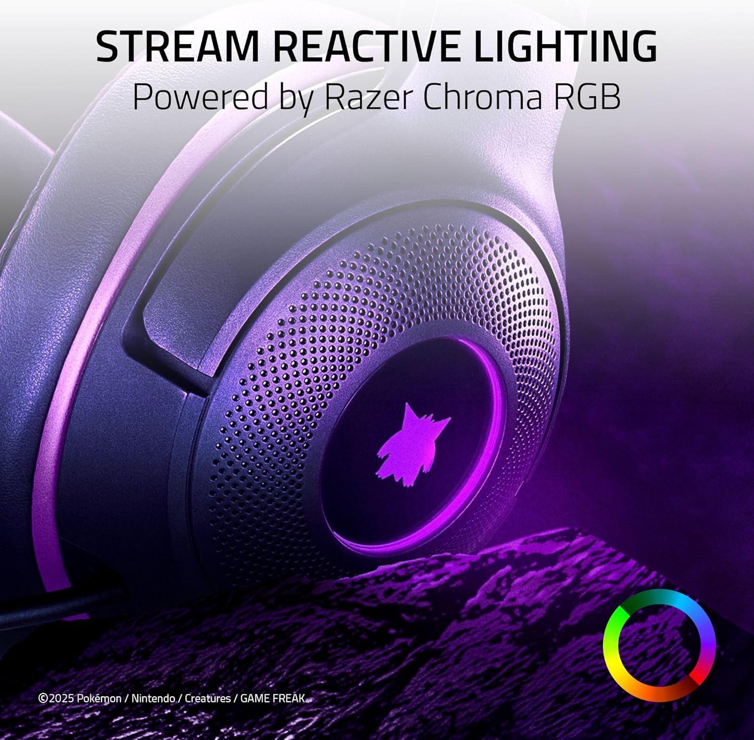 Razer Kraken Kitty V2 USB Wired Headset: Gengar Spikes - Stream Reactive Lighting - HyperClear Cardioid Mic - 40 mm Drivers - 7.1 Surround Sound - Comfortable Ear Cushions - Pokemon Gengar Edition(Pokemon Gengar Edition)