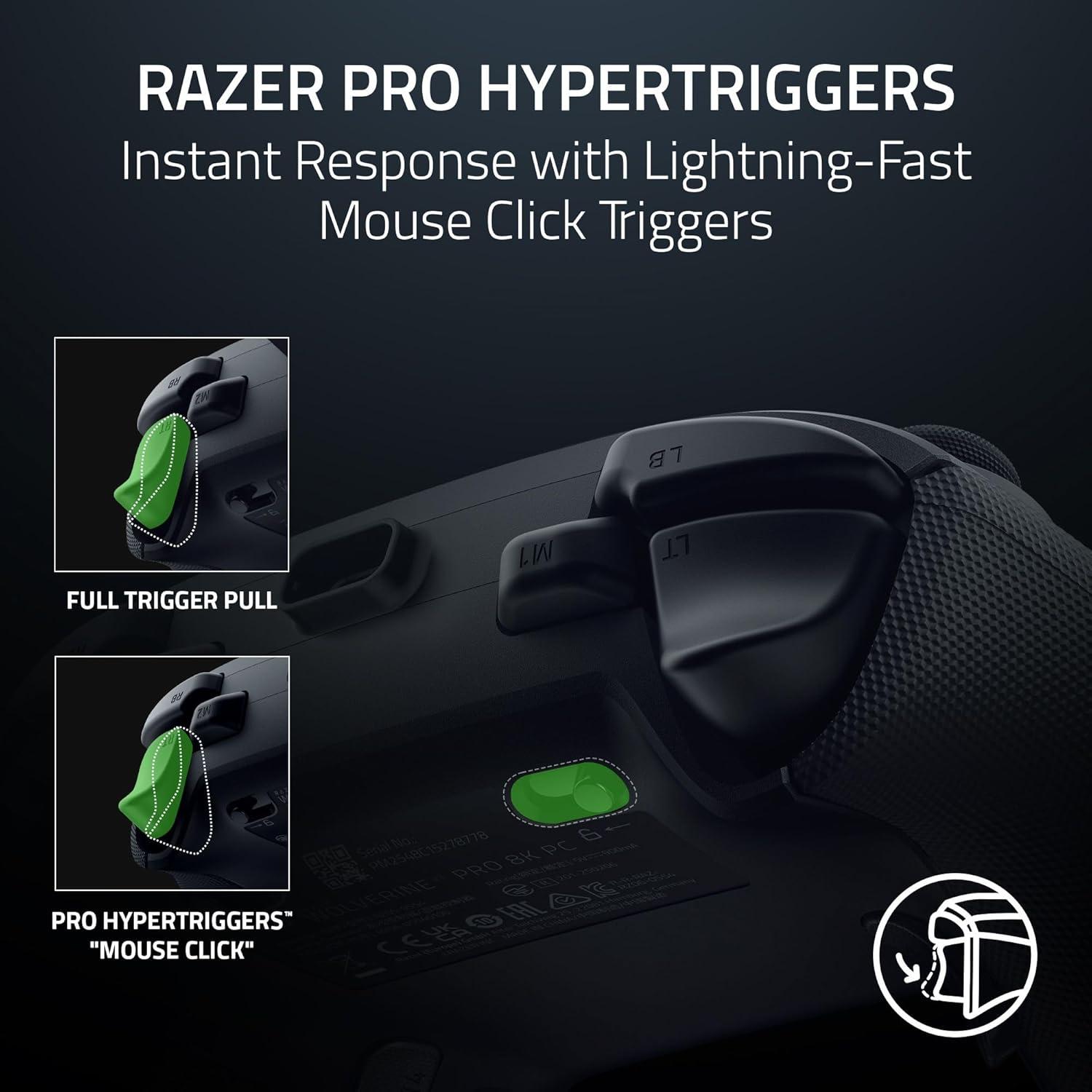 - Razer Pro HyperTriggers – Fire first with lightning-fast mouse click triggers or enable full analog control for enhanced precision—all with a flick of a switch.